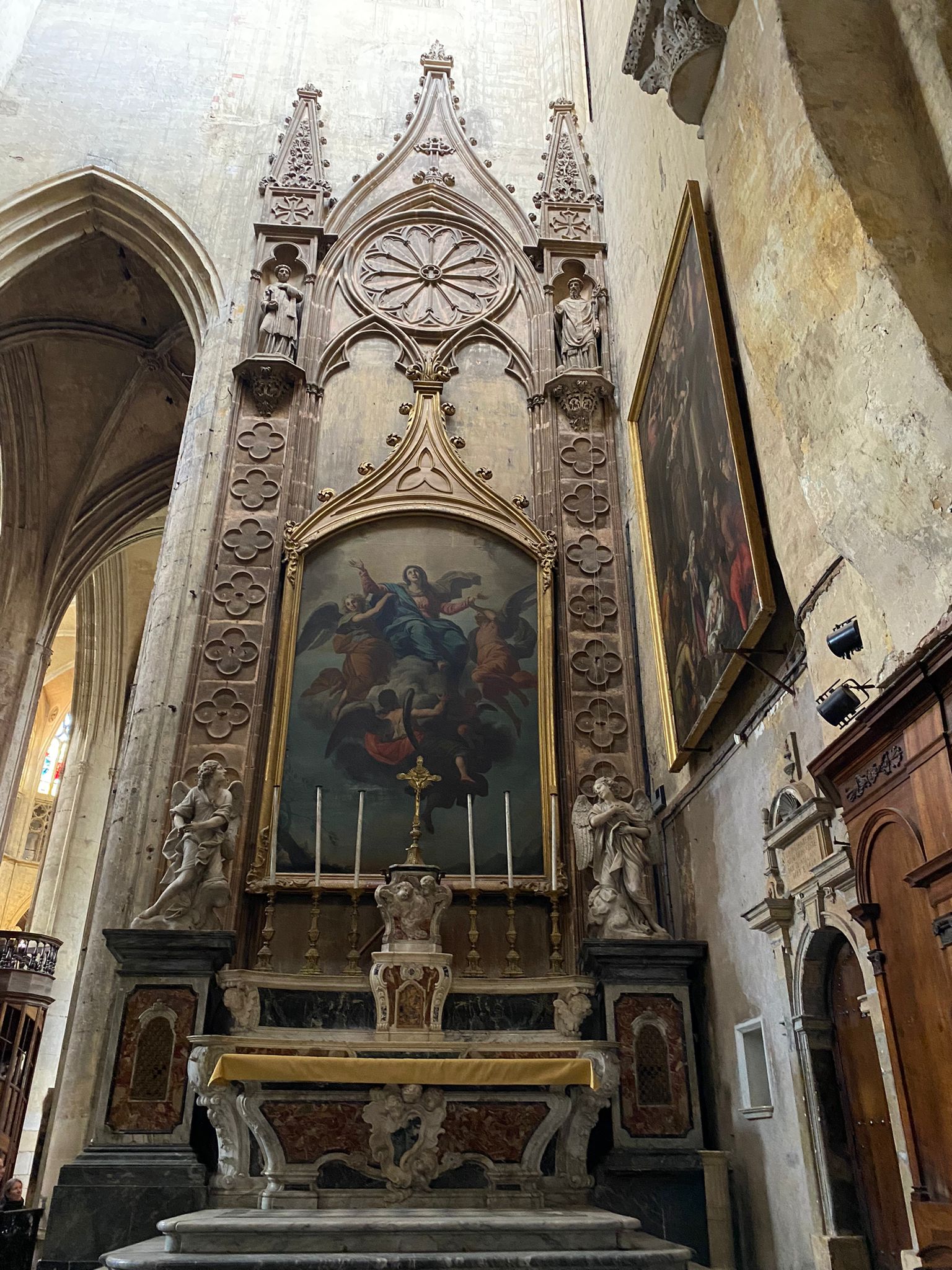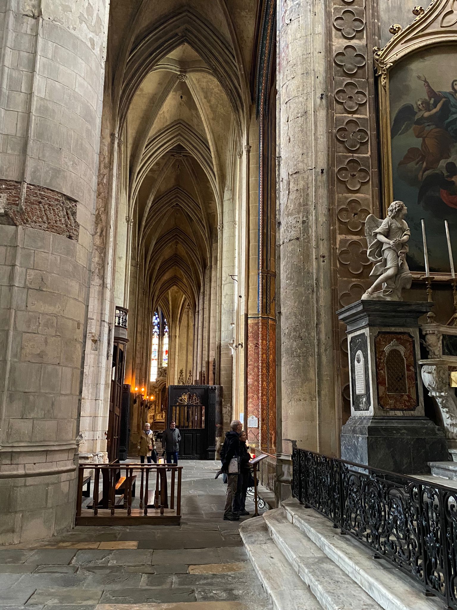 En effet, Amélie nous a expliqué que la Cathédrale a subit de multiples modifications, du 3ème siècle, date de la première construction, jusqu’au 19ème. De siècle en siècle, entre l’évolution des mœurs, les conflits, les différents évêchés, les modes architecturales, les plans lancés mais inachevés faute de moyens, la Cathédrale St Etienne est un joyau d’architecture unique en France, mais également dans le monde.